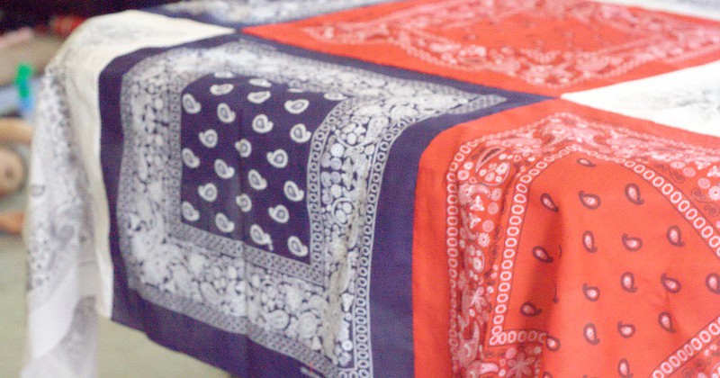 Tablecloth | This easy patriotic DIY Bandana Tablecloth is a fun and frugal Summer and 4th of July patriotic idea, with a full tutorial.